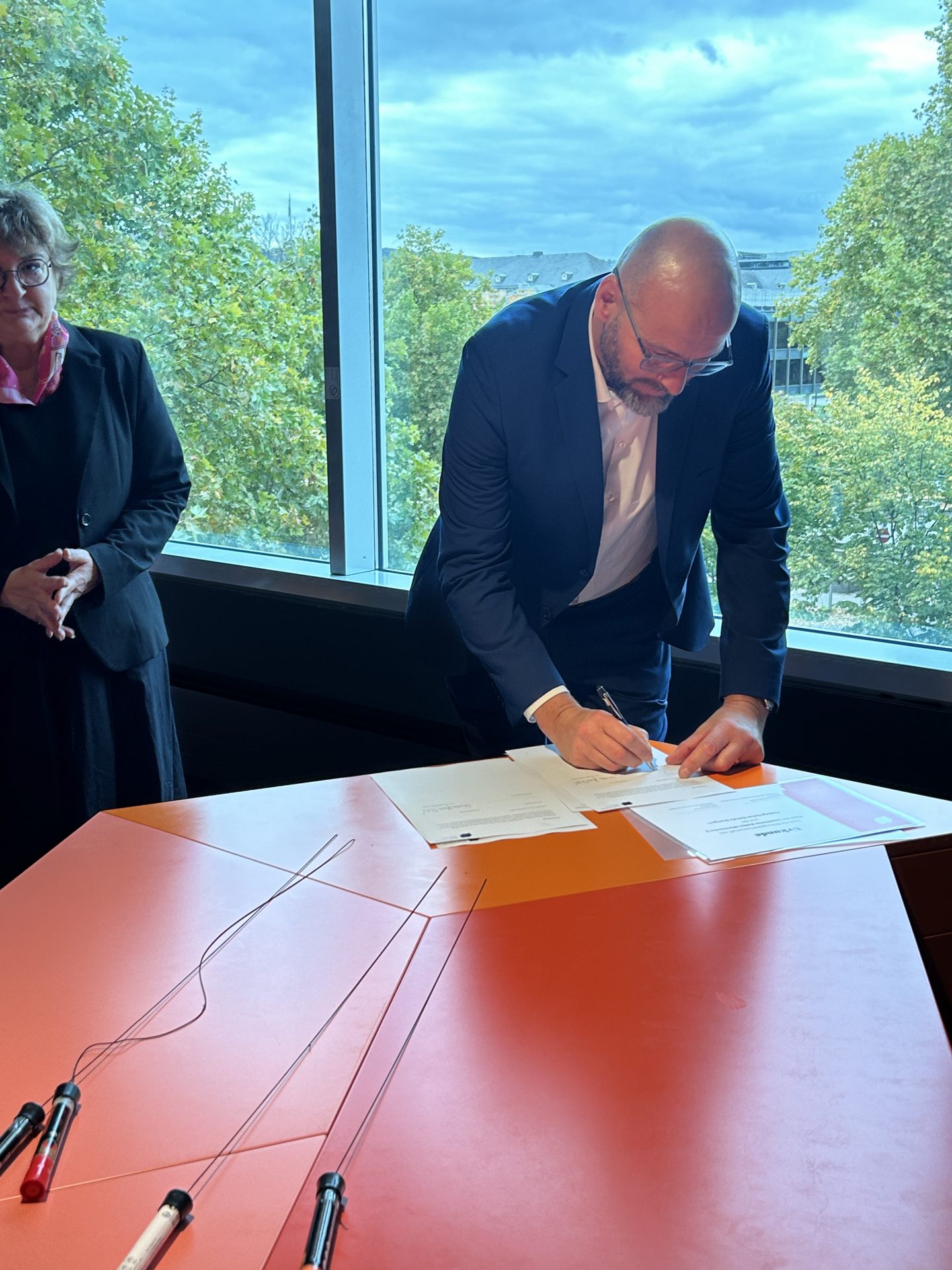 Die Schülerinnen und Schüler hatten die Gelegenheit, sich aktiv mit der Vergangenheit zu beschäftigen. Besonders beeindruckt zeigten sie sich von der authentischen Atmosphäre im Hotel Silber, das einst Sitz der Gestapo war und heute als Gedenkort dient. Ein Höhepunkt des Ausflugs fand im Haus der Geschichte statt: Die Hedwig-Dohm-Schule und das Haus der Geschichte unterzeichneten eine Bildungspartnerschaft.