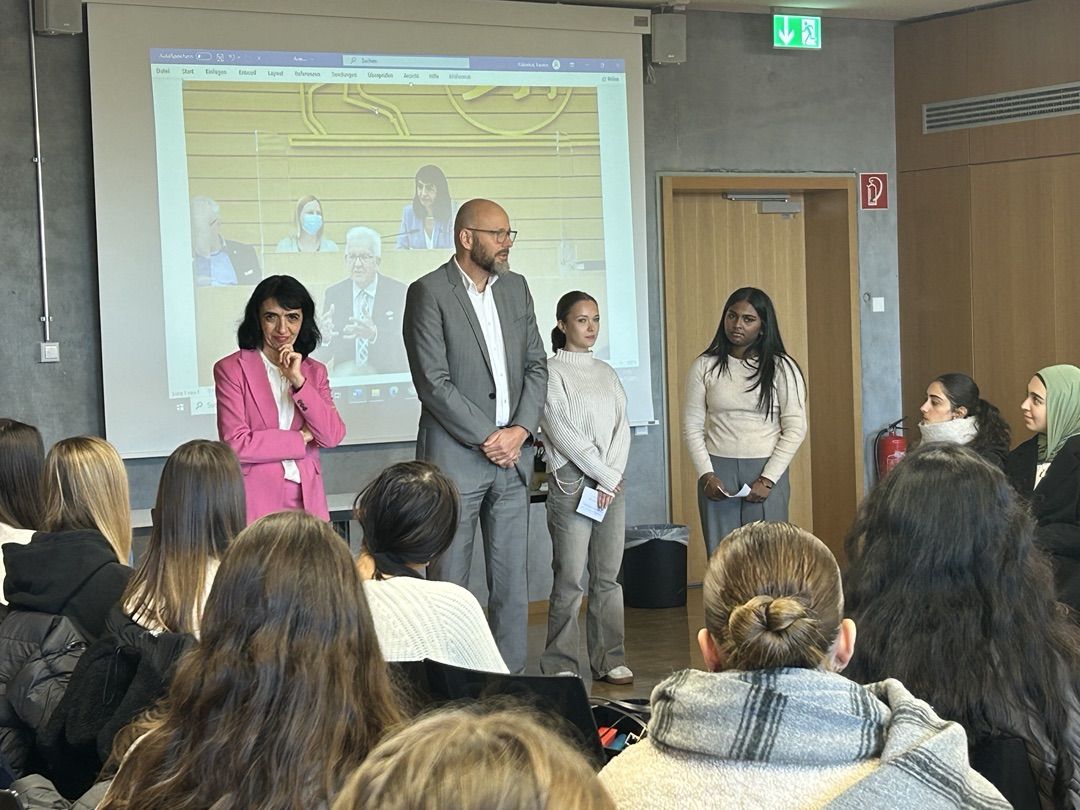 Die jungen Menschen nutzten die Gelegenheit, zahlreiche Fragen zu stellen – von aktuellen politischen Herausforderungen bis hin zu ganz persönlichen Themen. Frau Aras beantwortete jede Frage ausführlich und schülernah, sodass ein lebendiger Dialog entstand. Beim abschließenden Fototermin kam es zu besonders persönlichen Momenten: Einige Schülerinnen und Schüler bedankten sich für die Offenheit der Landtagspräsidentin, andere erzählten ihr, wie sehr sie ihnen als Inspiration dient. Diese Begegnung auf Augenhöhe hinterließ bleibenden Eindruck. Der Besuch von Muhterem Aras war mehr als nur eine politische Lehrstunde – er war ein eindrucksvolles Beispiel dafür, wie Politik greifbar und menschlich werden kann. Für die der J1 bleibt dieser Vormittag sicher lange in Erinnerung.