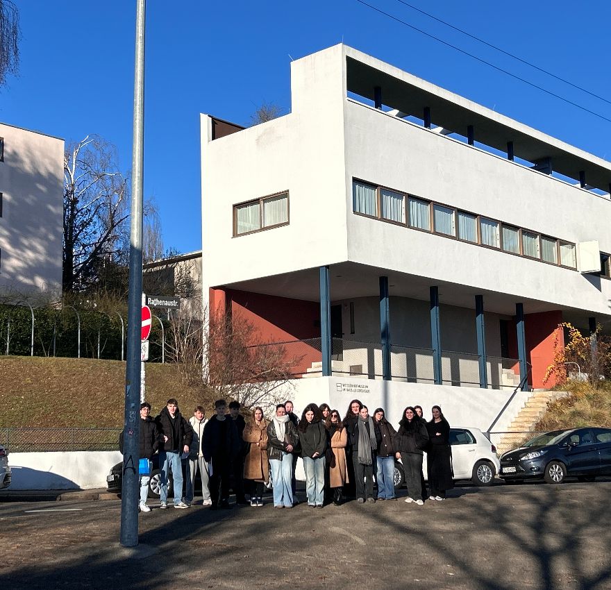 Der GGK-Kurs der BG12 von Frau Scherb unternahm im Rahmen einer GFS eine Exkursion zur Weißenhofsiedlung in Stuttgart. Die Weißenhofsiedlung gilt als bedeutendes Beispiel moderner Architektur und ist daher ein wichtiges Ziel Thema im Unterricht. Ziel des Ausflugs war es, die im Unterricht behandelten Inhalte direkt vor Ort zu vertiefen. Die Weißenhofsiedlung entstand 1927 im Rahmen einer Ausstellung des Deutschen Werkbundes und vereint Bauwerke mehrerer bekannter Architekten. Während des Besuchs erhielt die Klasse einen Überblick über die geschichtliche Einordnung sowie über zentrale Merkmale der modernen Architektur, wie klare Formen, flache Dächer und eine funktionale Raumaufteilung. Diese Aspekte konnten an den Gebäuden gut nachvollzogen werden. Besonders in Erinnerung blieben der moderne Eindruck der Gebäude sowie die offene Gestaltung der Wohnräume, die für viele überraschend zeitgemäß wirkte. Der Ausflug war für die Klasse lehrreich, da theoretisches Wissen anschaulich vermittelt wurde und ein besseres Verständnis für moderne Architektur entstand.