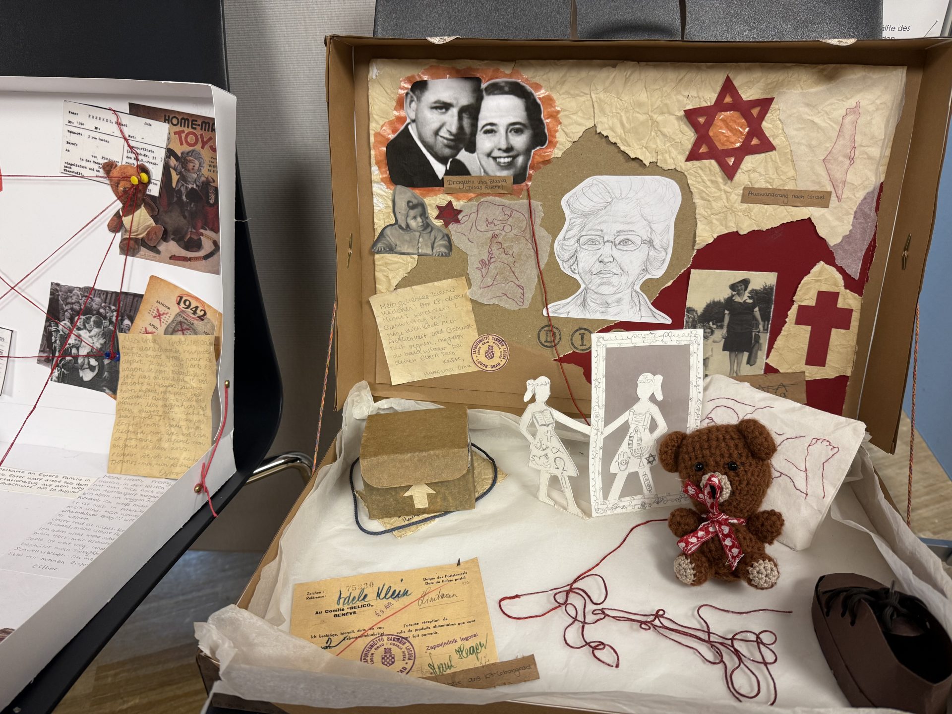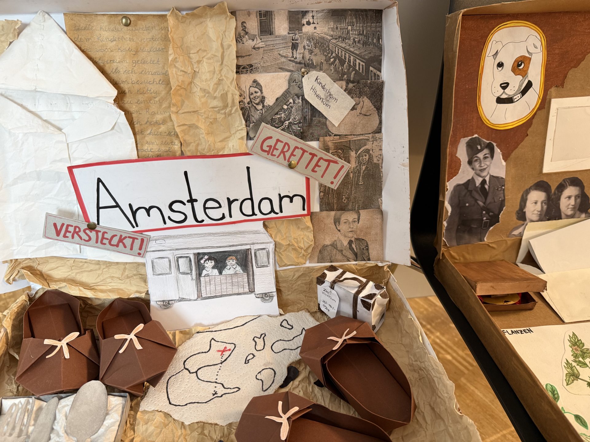 Zusätzlich hatten die Schülerinnen und Schüler der beiden Kunstkurse der elften Klassen des BG an der Hedwig-Dohm-Schule von Frau Mrosik kreative, bildhafte und teilweise auch interaktive Darstellungen in Koffern gestaltet, die zu den jeweiligen Themen passten und Eindruck hinterließen. Dadurch wurde die Ausstellung anschaulicher, persönlicher, facettenreich und sehr kreativ.